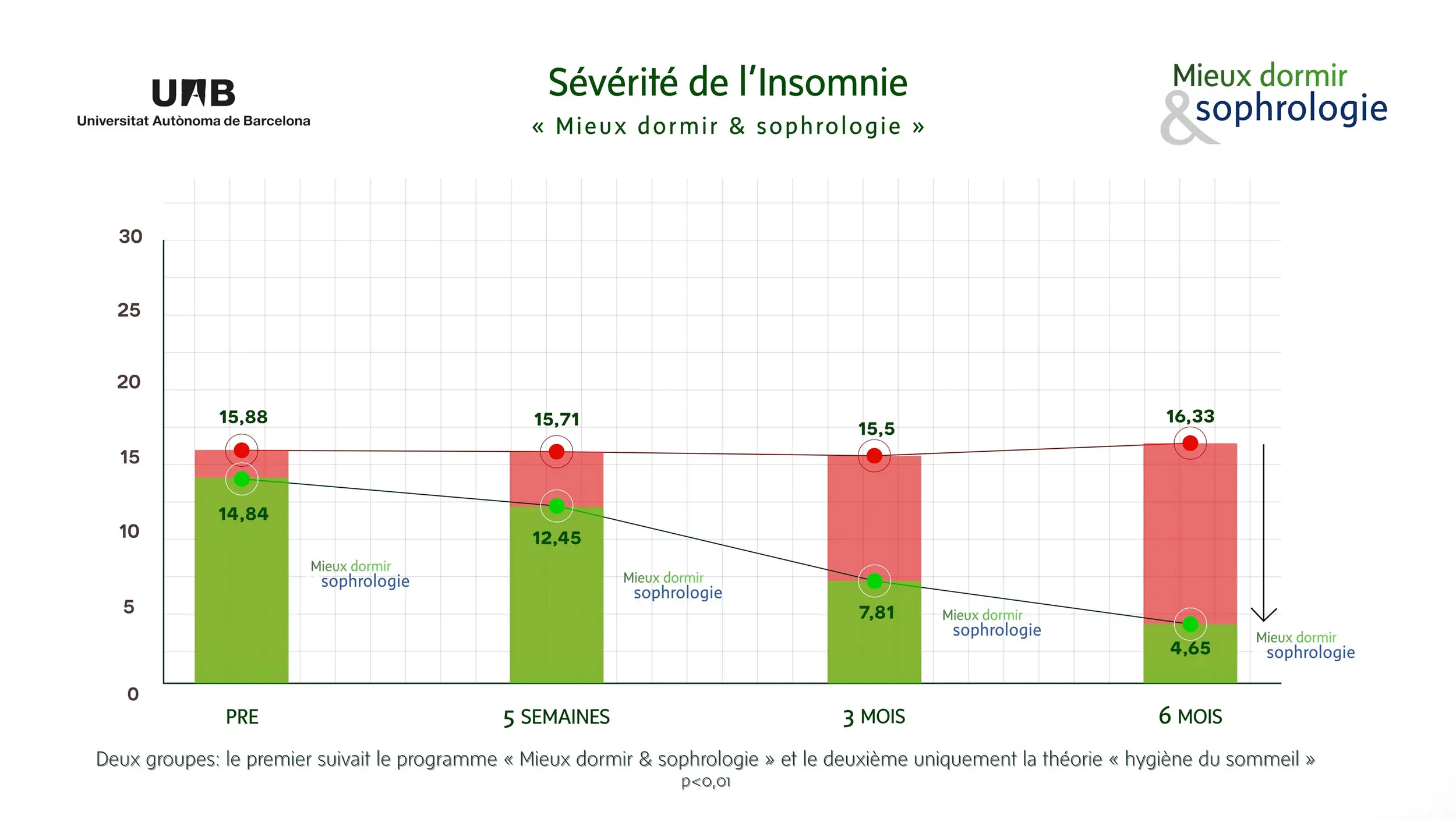 Les données de l'étude révèlent une amélioration notable du sommeil chez les participants au programme Mieux dormir & sophrologie par rapport au groupe de contrôle.
